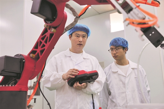 5月22日,在位于日照的天勰力(山東)衛(wèi)星技術(shù)有限公司,工作人員正在操控機器人設(shè)備。