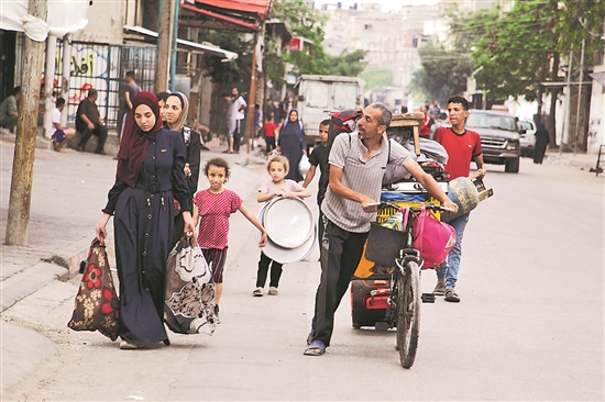 聯(lián)合國(guó)近東巴勒斯坦難民救濟(jì)和工程處近日在社交媒體上表示,以色列本月初以來在拉法的軍事行動(dòng)已迫使近100萬人逃離。圖為近日,在加沙地帶南部城市拉法,人們逃離家園。