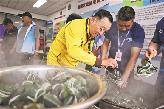 6月5日,北京安貞街道黨群服務(wù)中心,一線勞動(dòng)者與志愿者一起包粽子迎端午。當(dāng)日,該街道總工會(huì)聯(lián)合史超齊勞模工作室組織策劃了一場(chǎng)名為“我們的節(jié)日·端午節(jié)”的主題活動(dòng),向辛勤工作在一線的勞動(dòng)者們表達(dá)敬意和祝福。本報(bào)記者 蔚可任 攝
