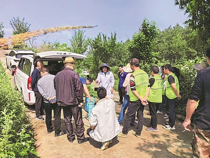 圖為近日貴州省農(nóng)科院專家來到貴陽花溪區(qū)湖潮鄉(xiāng),開展獼猴桃高效液體授粉技術(shù)培訓(xùn)。