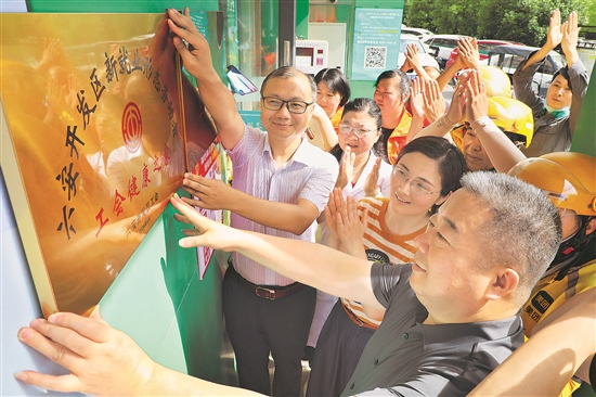 6月14日,由安徽省總工會(huì)駐六安蹲點(diǎn)組、六安開發(fā)區(qū)工會(huì)主辦的新就業(yè)形態(tài)勞動(dòng)者健康體檢暨“工會(huì)健康之家”揭牌儀式,在六安開發(fā)區(qū)衛(wèi)生服務(wù)中心舉行。這是安徽省設(shè)置的首個(gè)新就業(yè)形態(tài)勞動(dòng)者“工會(huì)健康之家”。