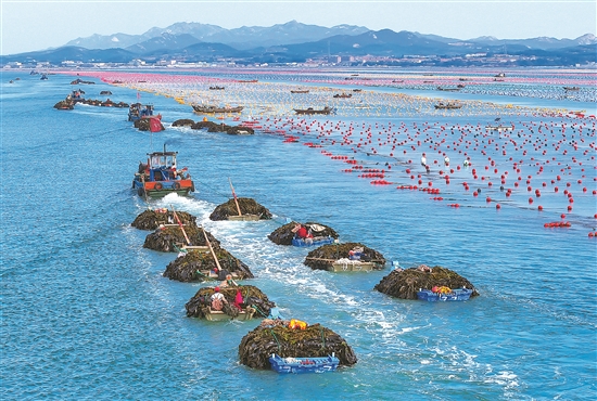 山東省榮成市是我國較大的海帶產(chǎn)地,每年6月是海帶收獲最繁忙的時(shí)節(jié)。