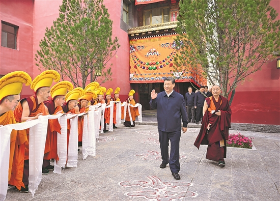 6月18日至19日,中共中央總書(shū)記、國(guó)家主席、中央軍委主席習(xí)近平在青海考察。這是18日下午,習(xí)近平在位于西寧市城中區(qū)的宏覺(jué)寺考察。 新華社記者 謝環(huán)馳 攝