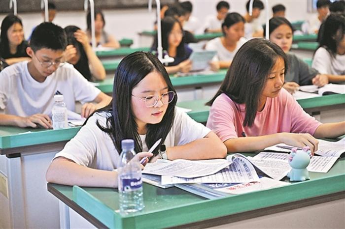 6月20日,在福建省龍巖市武平縣武平一中,武平縣鄉(xiāng)鎮(zhèn)中考考生在教室里自習。受持續(xù)性強降雨影響,武平縣多個鄉(xiāng)鎮(zhèn)遭遇洪澇災害。為保障鄉(xiāng)鎮(zhèn)中考考生順利參加考試,武平縣將武平一中、武平二中設為安置點,提供食宿保障,還有特定的教室自習,讓考生可以準時安全參加中考。 新華社記者 周義 攝