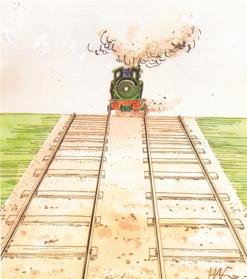 任性的司機(jī)將火車開上兩路軌道上,“前途”可想而知。生活中荒誕不經(jīng)的事屢見不鮮,多是任意胡為,盲目操作所致。