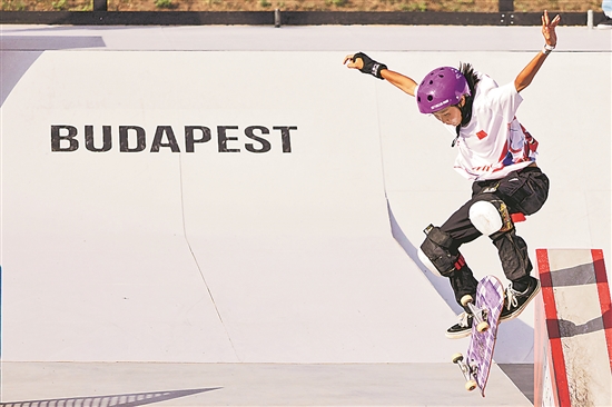 近日,巴黎奧運(yùn)會(huì)資格系列賽布達(dá)佩斯站收官,中國(guó)隊(duì)在攀巖、滑板、霹靂舞和自由式小輪車項(xiàng)目中收獲12個(gè)奧運(yùn)資格。圖為中國(guó)選手崔宸曦在滑板決賽比賽中。新華社發(fā)(弗爾季·奧蒂洛攝)