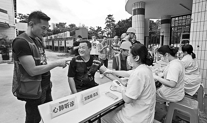 為提高一線建設者自救互救能力,近日,來自廣東深圳萬豐醫(yī)院的醫(yī)護人員前往深圳市寶安區(qū)某項目建設工地開展義診活動,為300余名工友提供血壓血糖測量、心肺聽診、視力篩查等免費診療服務,并對相關疾病及并發(fā)癥進行詳細講解。同時,活動現(xiàn)場還有急救培訓講師采用理論講解、實操訓練和學員互動相結合的方式,為工友們帶來一場生動的“體驗式”急診急救培訓。