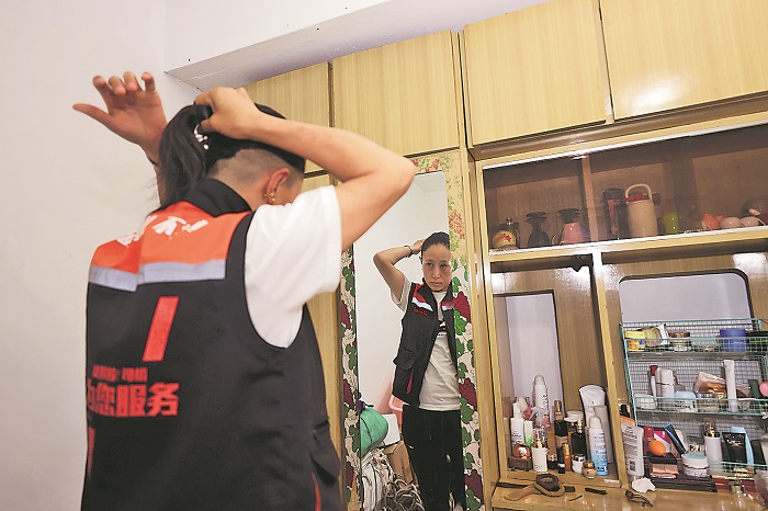 每次出門,劉希蘭都會(huì)戴上一頂帽子。她兩鬢的頭發(fā)剪得很短,上方的頭發(fā)又被帽子遮得嚴(yán)實(shí),經(jīng)常被人誤以為是男司機(jī)?!捌鋵?shí)我以前是留長(zhǎng)發(fā)的,前陣子跑工地多,灰塵大,這樣比較干凈?!眲⑾Lm說。
