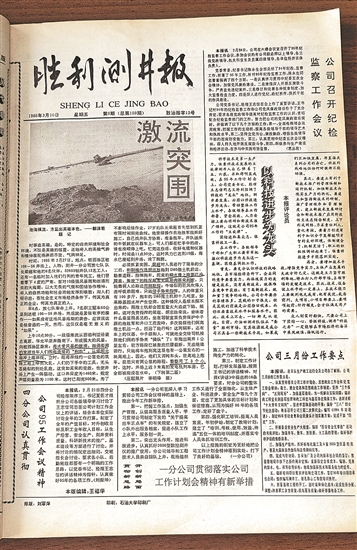 回到家,胡志勝翻箱倒柜找到了當時頭版頭條刊登這則新聞的《勝利測井報》。
