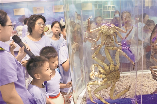 7月2日,江蘇省南通市崇川區(qū)幸福街道,“小候鳥”愛心暑托班30多位學(xué)生走進(jìn)江蘇省海域執(zhí)法監(jiān)督中心海洋科普館,通過參觀標(biāo)本、體驗(yàn)設(shè)施、趣味互動(dòng)等方式學(xué)習(xí)海洋科普知識(shí)。