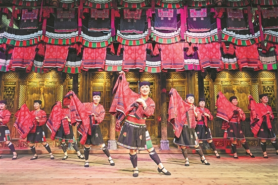 黃洛瑤寨村民演員在進(jìn)行紅瑤民俗文化表演(6月26日攝)。