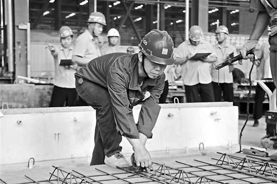 為推進(jìn)產(chǎn)業(yè)工人隊(duì)伍建設(shè),中建綠色建筑產(chǎn)業(yè)園(濟(jì)南)有限公司啟動(dòng)2024年企業(yè)技能人才自主評(píng)價(jià)取證考試,采用“理論+實(shí)操”評(píng)定方式,共有21名產(chǎn)業(yè)工人參加,評(píng)價(jià)工種涵蓋混凝土工、鋼筋工、水泥混凝土制品工三大工種,五個(gè)方向,考試通過后頒發(fā)相應(yīng)等級(jí)的技能等級(jí)證書。 圖為工人參加鋼筋工培訓(xùn)取證。本報(bào)通訊員 李慧慧 攝