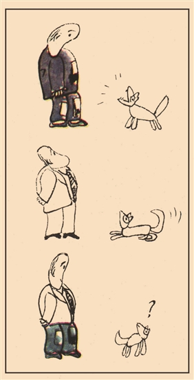 狗子的困惑主要出現(xiàn)在觀察生活的方法,忽視了問題的本質(zhì)。它使出看家本領(lǐng)關(guān)注人的服飾及其變化,卻忘記了人的自身處境和價值。這也難為了狗子,因為這樣的遭遇同樣也常常出現(xiàn)在人類身上。我們都知道,“只認(rèn)衣冠不認(rèn)人”,可不是說給狗子聽的;“狗眼看人低”也并非沒有“破圈”的用意。