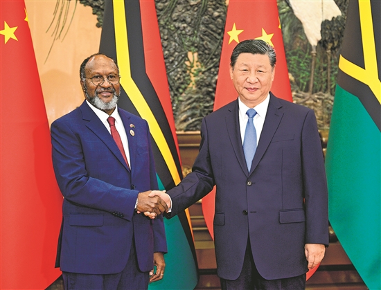 雙方發(fā)表《中華人民共和國和瓦努阿圖共和國聯(lián)合聲明》,一致同意提質(zhì)升級(jí)兩國全面戰(zhàn)略伙伴關(guān)系,構(gòu)建新時(shí)代中瓦命運(yùn)共同體。