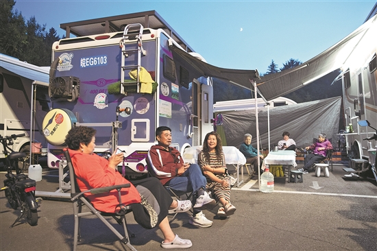 7月11日,游客在興安國(guó)家森林公園房車(chē)營(yíng)地內(nèi)休息。日前,有著“中國(guó)林都”美譽(yù)的黑龍江省伊春市進(jìn)入夏季旅游高峰期。涼爽宜人的氣候、富氧的森林公園吸引各地游客前來(lái)避暑消夏。近年來(lái),當(dāng)?shù)貙⑸稚鷳B(tài)旅游業(yè)作為高質(zhì)量綠色轉(zhuǎn)型發(fā)展的著力點(diǎn),通過(guò)開(kāi)發(fā)特色旅游產(chǎn)品、新業(yè)態(tài),打造中國(guó)生態(tài)康養(yǎng)旅游目的地。