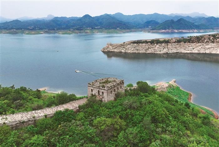 7月13日,在河北承德寬城滿族自治縣境內(nèi)的潘家口水庫(kù),游客乘船欣賞露出水面的長(zhǎng)城。據(jù)介紹,這段長(zhǎng)城是明長(zhǎng)城,20世紀(jì)70年代因建設(shè)潘家口水庫(kù),部分長(zhǎng)城隱沒水下,從而形成“水下長(zhǎng)城”奇觀。新華社記者 楊世堯 攝