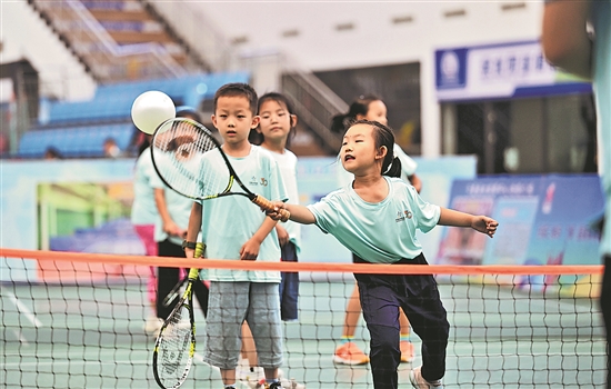 近日,小朋友們在參加網(wǎng)球課程的訓練。