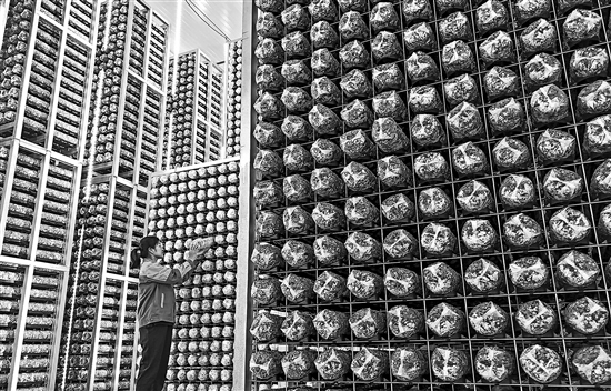 7月14日,山東萊西市院上鎮(zhèn)一家菌菇培育加工企業(yè)的工作人員在查看菌棒的生長(zhǎng)狀態(tài)。近年來(lái),山東青島萊西市立足農(nóng)業(yè)產(chǎn)業(yè)優(yōu)勢(shì),因地制宜做好“土特產(chǎn)”文章,培育一批鄉(xiāng)村優(yōu)勢(shì)特色產(chǎn)業(yè),形成了菌菇等特色產(chǎn)業(yè)集群遍地開(kāi)花的現(xiàn)代農(nóng)業(yè)發(fā)展模式,可年產(chǎn)各類食用菌培養(yǎng)基3000余萬(wàn)包,食用菌鮮品2萬(wàn)余噸,總產(chǎn)值3億元,帶動(dòng)農(nóng)民致富。