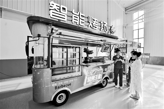 7月20日,在中瑞數字化(深州)產業(yè)園,一家智能科技企業(yè)生產的機器人在制作烤串。