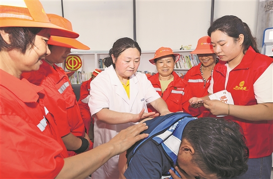 7月22日,安徽省淮北市相山區(qū)總工會(huì)組織醫(yī)護(hù)人員,在工會(huì)驛站內(nèi)為戶(hù)外勞動(dòng)者講解防暑降溫知識(shí),把脈問(wèn)診,貼敷“三伏貼”,將愛(ài)心和健康送給戶(hù)外勞動(dòng)者。
