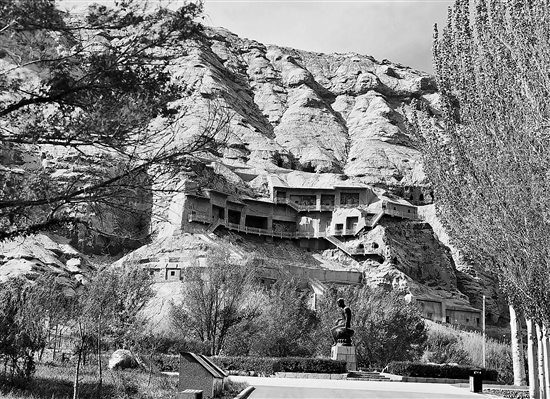 這片白楊,筆直的干,筆直的枝,與土黃色的山體交相輝映,在孤獨而漫長的歲月中,守護(hù)石窟,經(jīng)歷風(fēng)雨。