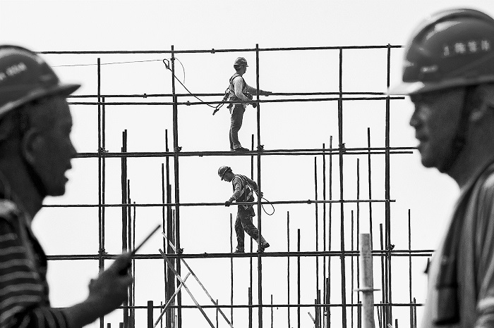 入伏以來(lái),全國(guó)多地高溫天氣不斷,連日高溫和暴曬也給工程施工帶來(lái)一些挑戰(zhàn)。位于北京市海淀區(qū)西北旺鎮(zhèn)的故宮博物院北院區(qū)項(xiàng)目工地,通過(guò)采取錯(cuò)峰施工、科學(xué)補(bǔ)水、搭建涼棚等舉措應(yīng)對(duì)高溫天氣,確保戶(hù)外施工人員在安全健康的前提下開(kāi)展作業(yè),穩(wěn)步推進(jìn)工程進(jìn)度。圖為7月23日,該項(xiàng)目的架子工正在搭建腳手架。本報(bào)記者 王偉偉 攝