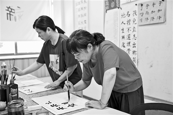 近日,居民在浙江省嘉興市南湖區(qū)東柵街道新南社區(qū)鄰里中心寫(xiě)書(shū)法。暑期期間,該區(qū)下屬各街道社區(qū)及鄉(xiāng)鎮(zhèn)依托黨群服務(wù)中心、文明實(shí)踐站等場(chǎng)所,重點(diǎn)關(guān)注“一老一小”群體,在炎炎夏季讓居民在“家門(mén)口”就能享受便利多樣的暑期活動(dòng)。新華社記者 徐昱 攝