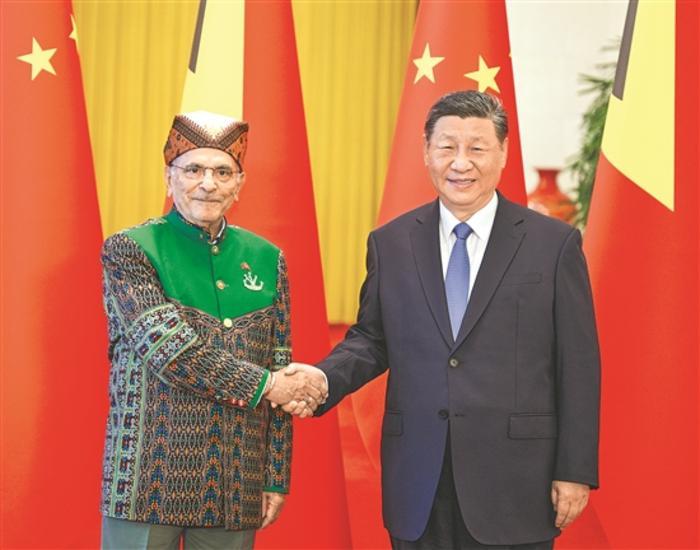 習近平強調,中方愿同東帝汶一道,朝著“三個更高”的目標,引領雙邊關系長期穩(wěn)定發(fā)展。一是堅定相互支持,打造更高水平雙邊關系。中方堅定支持東帝汶維護國家統(tǒng)一和社會穩(wěn)定的努力,愿同東帝汶全面深化戰(zhàn)略協(xié)作和發(fā)展合作,維護好兩國主權和安全利益,朝著共建命運共同體的大方向邁進。二是堅持互利共贏,開展更高質量務實合作。圍繞產(chǎn)業(yè)振興、基礎設施建設、糧食自給、民生改善等四大重點領域合作,以簽署共建“一帶一路”合作規(guī)劃為契機,加強發(fā)展戰(zhàn)略對接,分享水利建設、節(jié)水灌溉、防災減災等領域經(jīng)驗技術,實施好水稻栽培等農(nóng)業(yè)合作,推進漁業(yè)、減貧等合作,助力東帝汶經(jīng)濟自主和多元化發(fā)展。三是共促“全球南方”事業(yè),開展更高層次多邊協(xié)作,弘揚和平共處五項原則精神,加強在聯(lián)合國、世界貿(mào)易組織等多邊平臺協(xié)調配合,共同倡導平等有序的世界多極化、普惠包容的經(jīng)濟全球化,推動構建人類命運共同體。中方也愿在中國-葡語國家經(jīng)貿(mào)合作論壇、聯(lián)合國糧農(nóng)組織等框架內同東帝汶開展更多雙邊、三方合作。