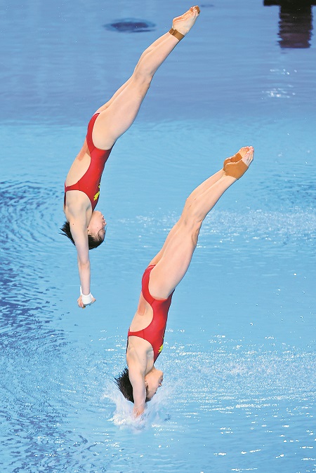 圖為陳芋汐(左)和全紅嬋在比賽中。本報(bào)特派記者 楊登峰 攝