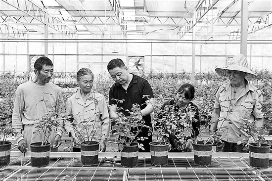 目前,當(dāng)?shù)嘏嘤录?0余種,培養(yǎng)種植管理技術(shù)型花匠人才32名,去年以來派出“郭塘花匠”售后管護(hù)1500人次,實(shí)現(xiàn)“種好一朵花、帶富一村人”。圖為當(dāng)?shù)卮迕裨诨ń车闹笇?dǎo)下,學(xué)習(xí)月季培育技術(shù)。本報(bào)通訊員 李君平 攝