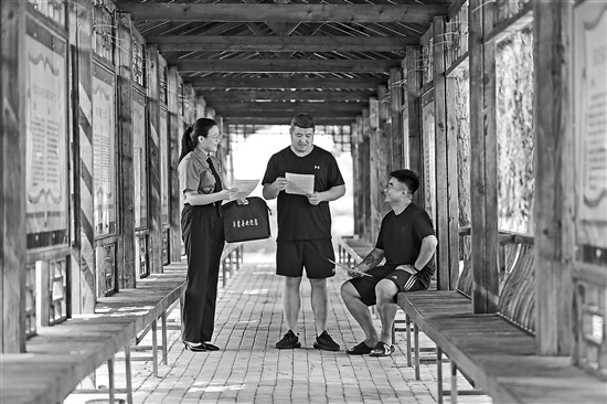 8月7日,遼寧阜新蒙古族自治縣人民檢察院檢察人員在于寺鎮(zhèn)官營(yíng)子村向村民進(jìn)行普法宣傳。當(dāng)日,檢察人員通過座談交流、發(fā)放普法宣傳單等方式,針對(duì)電信詐騙、土地糾紛、非法集資等鄉(xiāng)村常見法律問題進(jìn)行普法宣傳,提高村民法律意識(shí)。新華社記者 龍雷 攝