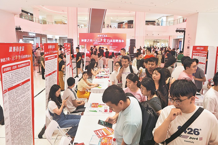 8月10日下午4時,一場招聘“夜市”在北京市五棵松萬達(dá)廣場開啟,前來了解情況的人絡(luò)繹不絕。