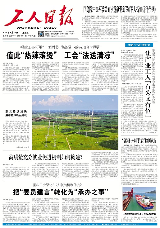 工人日?qǐng)?bào) 2024年08月14日 星期一