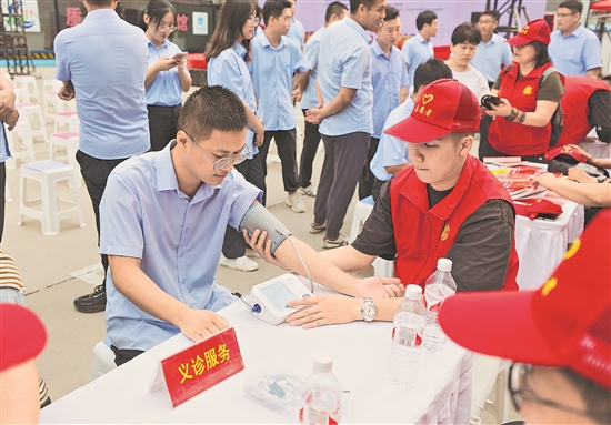 在當(dāng)天的活動中,來自河北省直系統(tǒng)的勞模志愿者為一線職工帶來了義診、理發(fā)、照相、手機(jī)貼膜、普法宣傳以及文藝演出等豐富多樣的貼心服務(wù),受到職工的熱烈歡迎。