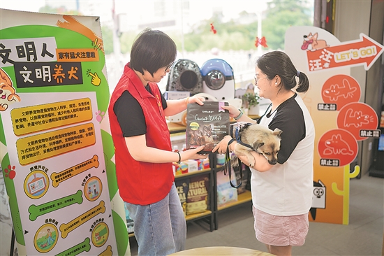 8月13日,居民在浙江省湖州市月河街道馬軍巷社區(qū)萌寵驛站進(jìn)行文明養(yǎng)犬積分兌換。