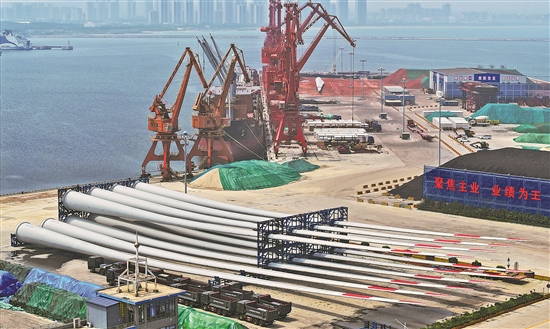 山東港口蓬萊港是中國北方重要風電設備作業(yè)母港,2022年以來,蓬萊港結(jié)合當?shù)睾9ぱb備產(chǎn)業(yè)快速發(fā)展需求,確立了打造北方主要風電設備出口母港和重要海上風電中轉(zhuǎn)港的目標,逐步形成了涵蓋塔筒、葉片、主機及相關(guān)配件的風電產(chǎn)業(yè)鏈全線產(chǎn)品一站式配艙出海業(yè)態(tài)。