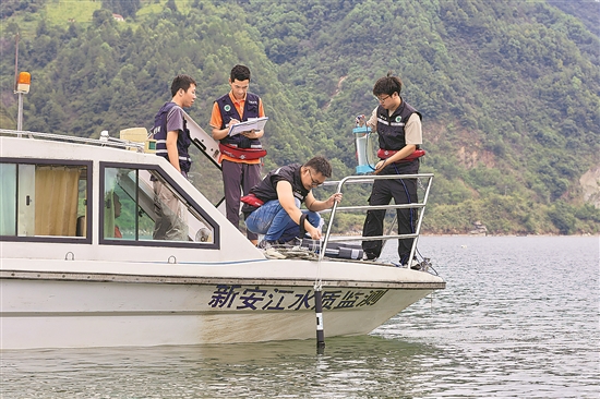 8月13日,工作人員在新安江流域跨省界斷面進行水質(zhì)監(jiān)測采樣。