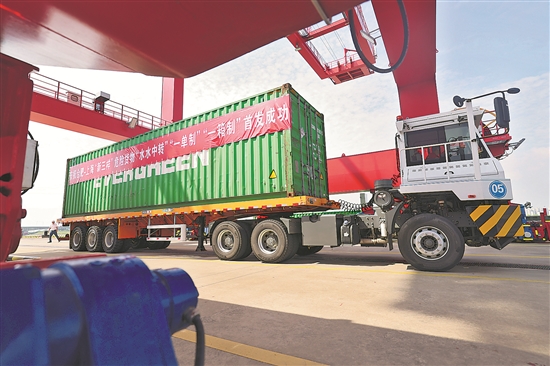 “勝濤668合肥”此次出發(fā)標(biāo)志著合肥-上?!肮D(zhuǎn)水”首航成功,合肥造“新三樣”貨物水路運(yùn)輸實(shí)現(xiàn)了“一程申報(bào)、一單到底、一箱到底”的“一站式”運(yùn)輸。與原先的公路運(yùn)輸相比,如今的水路運(yùn)輸物流成本下降約15%。本報(bào)通訊員 陳家樂(lè) 攝