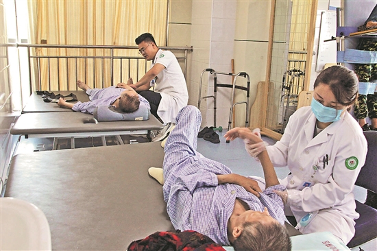 8月15日,山東省梁山縣中醫(yī)院康復醫(yī)學科在為慢性病患者按摩。針對慢性病患者增多且趨向年輕化,中醫(yī)治療成為許多患者的首選方案。本報通訊員 楊玉建 呂玉會 攝