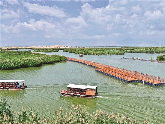 同時(shí)擁有沙、水、葦、鳥(niǎo)、山五大景觀的寧夏沙湖景區(qū)是國(guó)家5A級(jí)旅游景區(qū)、中國(guó)十大魅力濕地,也是“山水林田湖草沙”全生態(tài)體驗(yàn)?zāi)康牡亍T谶@里,一半是湖水一半是沙漠,江南水鄉(xiāng)之靈秀與塞北大漠之雄渾融為一體。隨著多年的系統(tǒng)治理,沙湖的水質(zhì)不斷提升,成為210多種鳥(niǎo)類棲息和繁衍的理想場(chǎng)所,是名副其實(shí)的“鳥(niǎo)類天堂”。