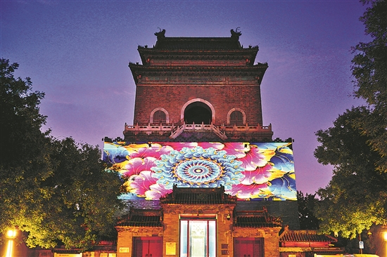 北京中軸線(xiàn)鐘樓上演燈光秀