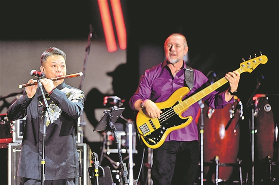 當?shù)貢r間8月17日,在巴西首都巴西利亞,來自中國和巴西的音樂家在沙灘藝術節(jié)中國日活動上表演合奏。新華社發(fā)(盧西奧·塔沃拉 攝)