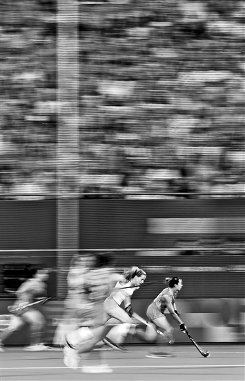 中國(guó)女子曲棍球隊(duì)在與荷蘭女子曲棍球隊(duì)進(jìn)行冠軍賽。本報(bào)記者 楊登峰 攝