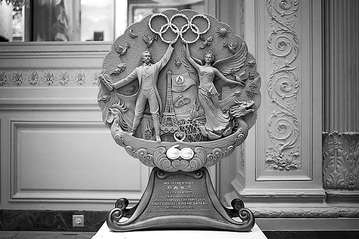 “今年是中法建交60周年,又是國(guó)際奧委會(huì)成立130周年,是奧運(yùn)會(huì)時(shí)隔百年再度回歸巴黎,所以我希望用奧運(yùn)雕塑傳遞和平友誼,體現(xiàn)中法同舟共渡60載,體現(xiàn)世界的美美與共?!钡袼茏髡唿S劍談到創(chuàng)作初衷時(shí)說(shuō)。