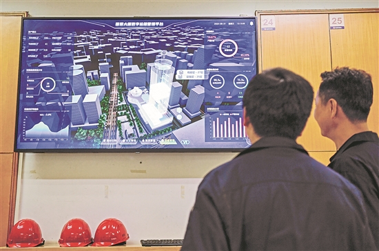 8月21日,在深圳國(guó)貿(mào)大廈,物業(yè)工作人員查看新建成的國(guó)貿(mào)大廈數(shù)字運(yùn)維管理平臺(tái)。近日,深圳國(guó)際貿(mào)易中心大廈(深圳國(guó)貿(mào)大廈)數(shù)字運(yùn)維管理平臺(tái)升級(jí)改造基本完成,老地標(biāo)迎來(lái)了新的“智慧芯”。新華社記者 毛思倩 攝