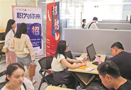 8月22日拍攝的百日千萬(wàn)招聘專(zhuān)項(xiàng)行動(dòng)——杭州市綜合性人才招聘會(huì)現(xiàn)場(chǎng)。50家參會(huì)企業(yè)推出1200多個(gè)工作崗位,助力勞動(dòng)者求職就業(yè)。新華社記者 韓傳號(hào) 攝