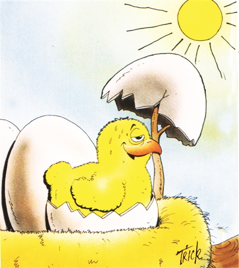 今天有點(diǎn)熱,剛孵出的雞寶寶頭頂烈日實(shí)在難受,它就地取材用蛋殼支起“遮陽傘”,聊勝于無的小發(fā)明解決問題就好。