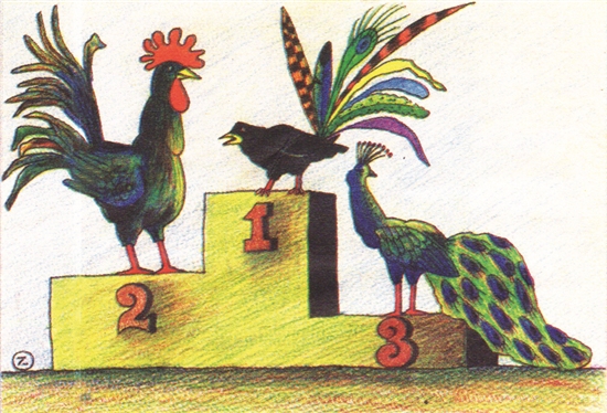 誰也沒料到禽類時(shí)裝比賽,烏鴉奪得冠軍,憑什么它能奪魁?原來依靠弄虛作假蒙騙了評(píng)委。是它沽名釣譽(yù)手段高?還是……