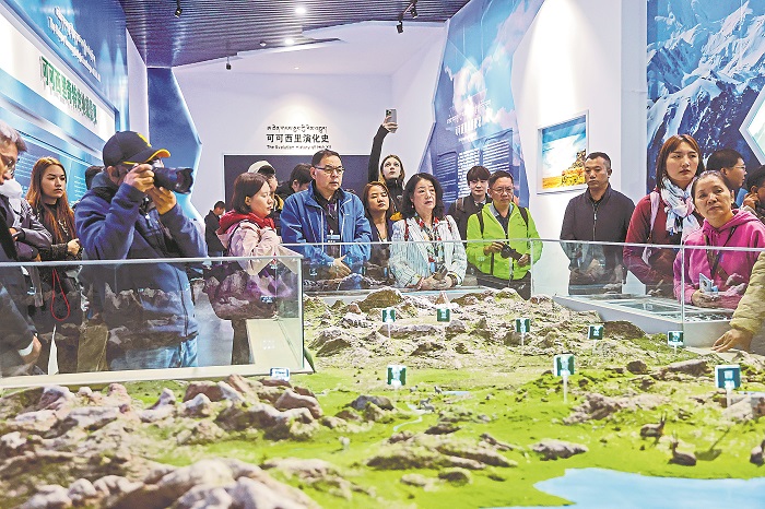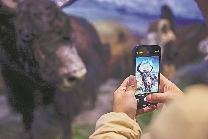 日前,青海玉樹,觀眾在玉樹州博物館參觀。據(jù)了解,玉樹州博物館是玉樹地震災(zāi)后重建十大標(biāo)志性建筑之一,分為序廳、自然展區(qū)、人文展區(qū)、臨時(shí)展廳。博物館通過實(shí)物標(biāo)本等方式,展示了三江源和可可西里的野生動(dòng)物、植物以及玉樹州的歷史、建筑、服飾、飲食等。