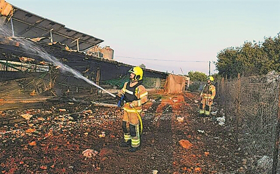 當(dāng)?shù)貢r(shí)間8月25日,在以色列北部加利利地區(qū),消防人員在一處由火箭彈引起的火災(zāi)現(xiàn)場(chǎng)進(jìn)行滅火。新華社發(fā)
